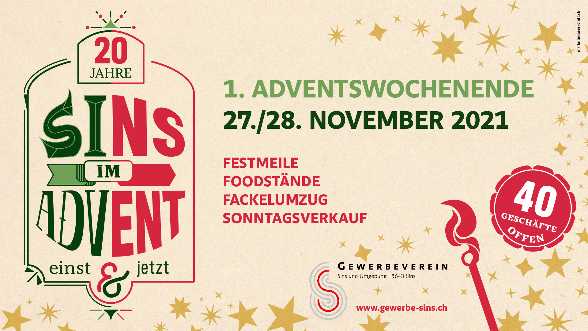 21. Sins im Advent (Jubiläumsevent 20 Jahre, Verschiebung von 2020) Datum 27. - 28. November 2021 Vorbei! Veranstaltungsort Sins Kategorie Archiv Teile diese Veranstaltung